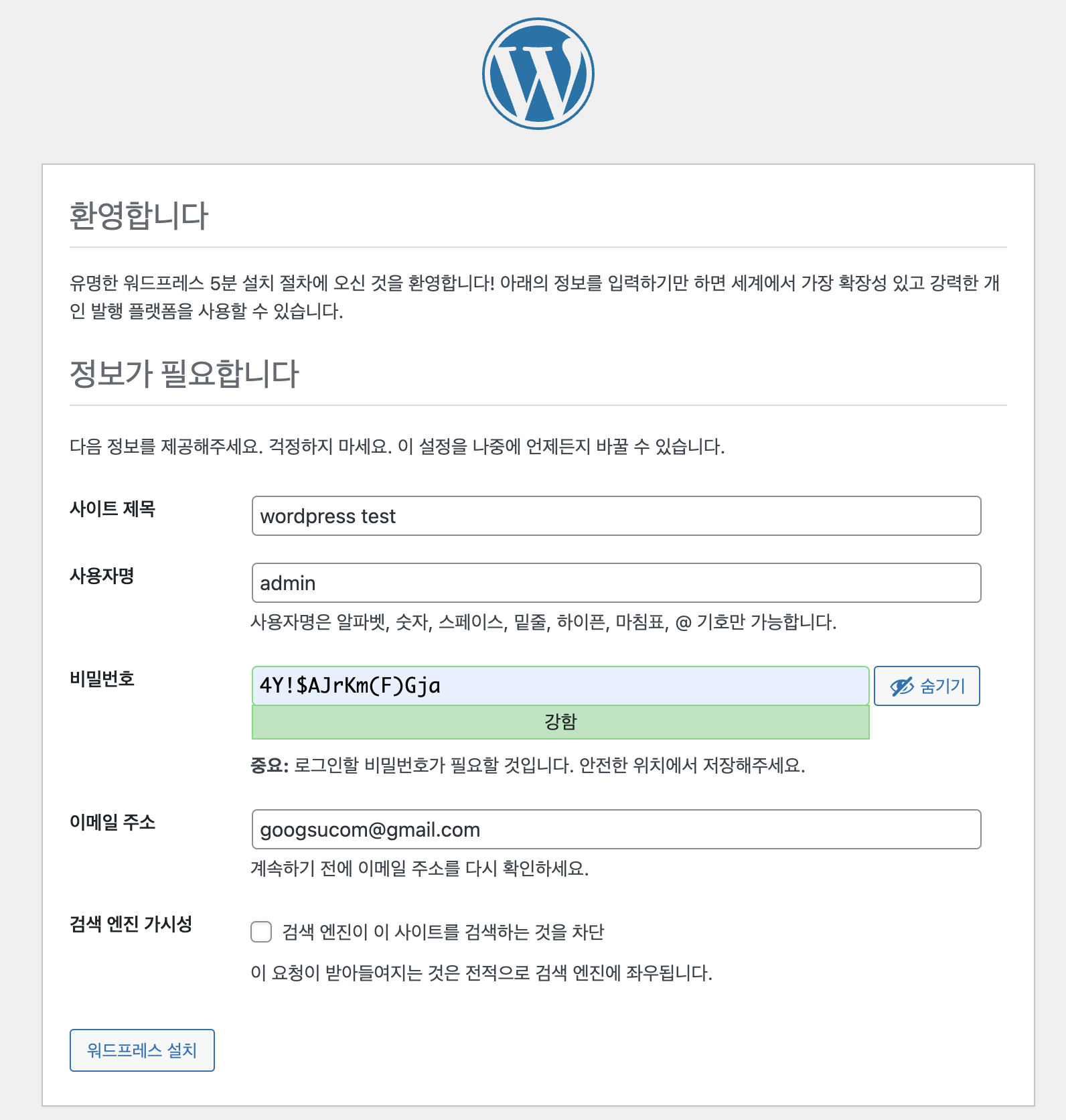 6. http://localhost:8081/ 워드프레스 사이트 접속 및 설치